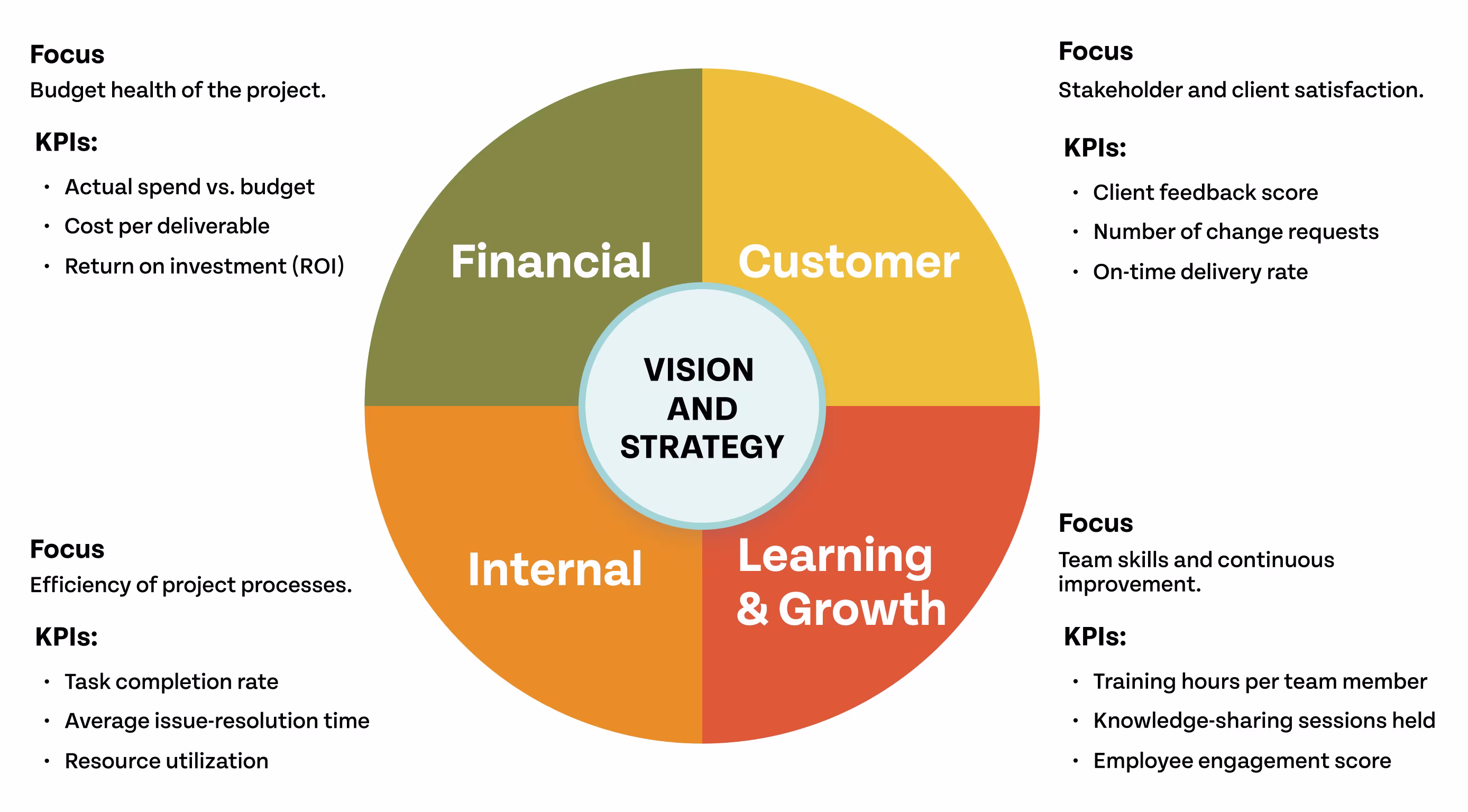 The term balanced refers to this mix. Traditional ROI measures were fine in the industrial age, but modern businesses compete on knowledge, culture, and technology. The BSC ensures organizations track both lagging results and leading drivers of success.