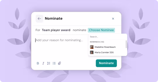 That's why we built Nominations—a way to let your entire team have a voice in who gets recognized, creating a culture of democratic, transparent appreciation.