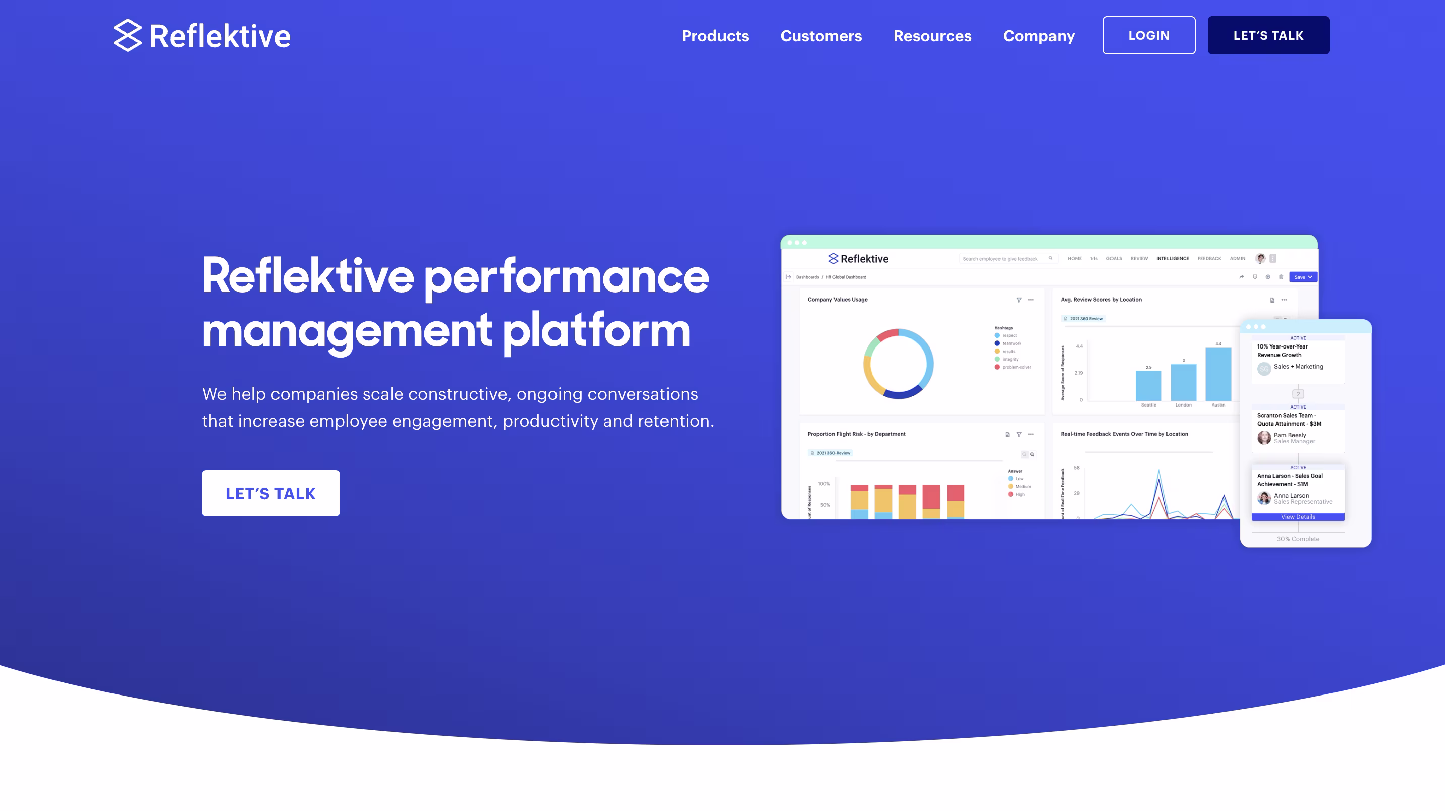 The platform supports integrated analytics for reviews, check-ins, goals, feedback, and surveys Reflektive, focusing on operational metrics rather than strategic workforce analytics.