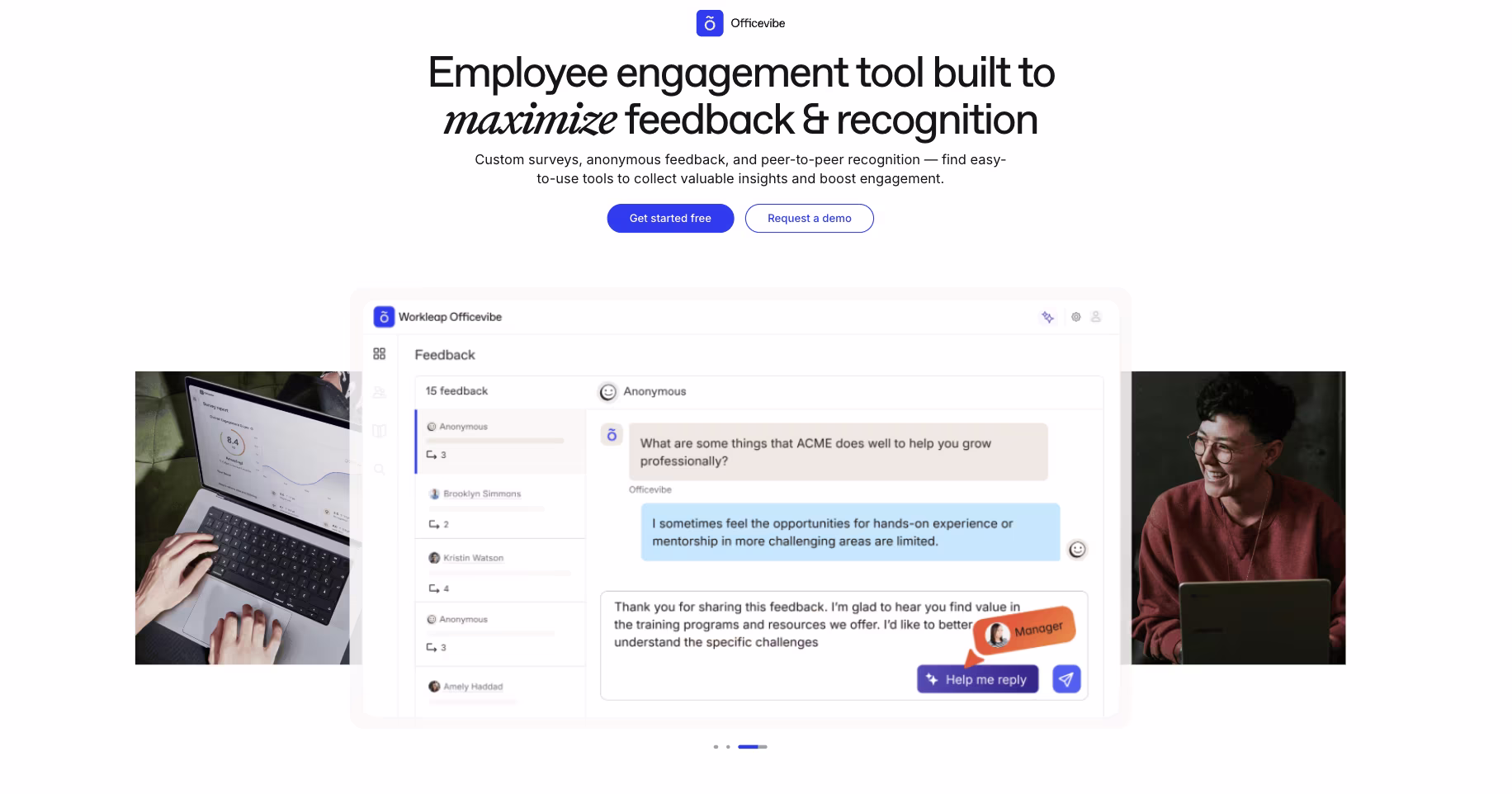 Anonymous feedback that works. Users appreciate that it allows "2-way anonymous communications around feedback" where managers can actually have conversations with employees while keeping everything anonymous.