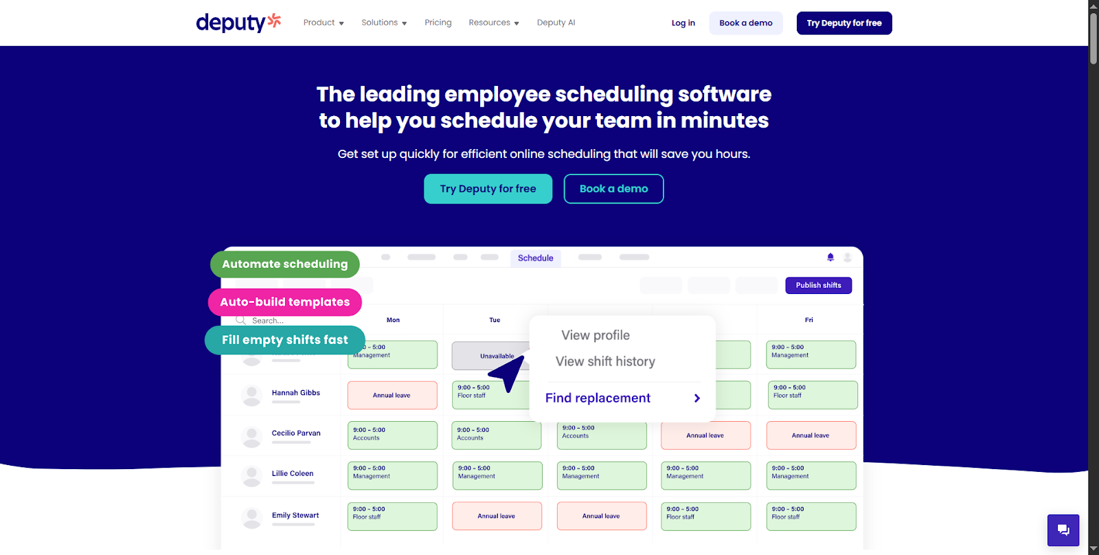 Deputy is a workforce scheduling platform built specifically for shift-based and hourly workforces. It is best for HR teams of companies managing frontline workers, like in retail, hospitality, healthcare, and field service. It helps to simplify scheduling, and automate time tracking and complying with labour laws.
